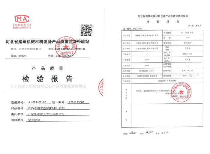 冷熱水用聚丙烯(PP-R)管件檢驗報告